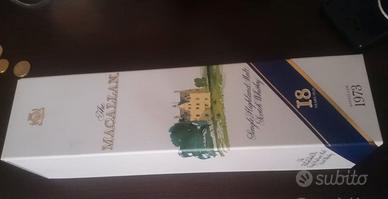 Vendo una bottiglia di Macallan Single Malt Scotch Whisky, distillato nelle Highland nel 1973 e imbottigliato nel 1991, proveniente dalla Macallan-Glenlivet Ltd., Craigellachie – Scozia.