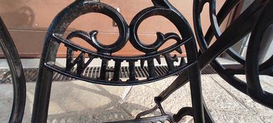 Macchina da cucire antica WHITE SEWING MACHINE CLEVELAND U.S.A. con mobile supporto massiccio in ghisa.