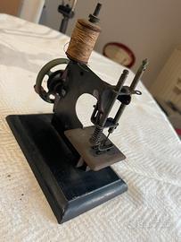 Bellissima macchina per cucire giocattolo in lamiera con rocchetto in legno e pomello originali. Produzione anni 45/50.
