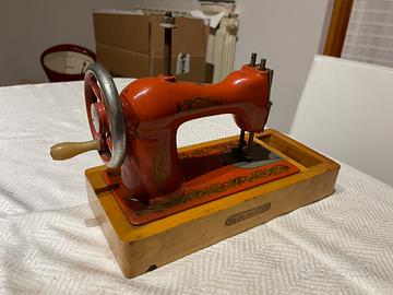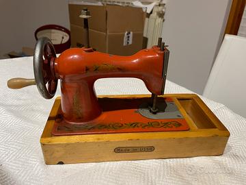 Vendo splendida macchina da cucire per bambini modello Orsha (Орша) originale, prodotta in Unione Sovietica tra gli anni '70 e '80. Si tratta di un vero oggetto di modernariato, non una semplice riproduzione. Costruita interamente in metallo pesante (ghisa/acciaio) con base in legno massello, è famosa per la sua robustezza e il design tipico dell'epoca socialista. Dettagli dell'oggetto: • Colore: Arancione vibrante con bellissime decalcomanie floreali dorate ancora ben visibili. • Marchi originali: Presente la targhetta "Made in USSR" sulla base e il logo di fabbrica sulla scocca. • Certificazione: Sul fondo del legno è ancora presente il timbro OTK (Controllo Qualità Sovietico), un dettaglio molto ricercato dai collezionisti che ne attesta l'originalità. • Funzionamento: La manovella gira fluidamente e il meccanismo dell'ago si muove correttamente. • Condizioni: Ottime condizioni estetiche come da foto, con una bellissima patina vintage che ne aumenta il fascino. Perfetta come pezzo d'arredo per vetrine, studi creativi o per collezionisti di giocattoli d'epoca e oggettistica sovietica.