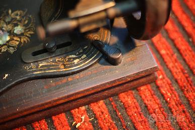 Vendo antica macchina da cucire. seconda metà '800 Base in legno intarsiato e cesellatura in madreperla sulla base metallica