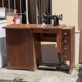 Splendida Macchina da Cucire d'Epoca "Cleveland" con Mobile Originale – Anni '20/'30, marca Cleveland, un vero gioiello di ingegneria meccanica dei primi del Novecento. Si tratta di una classica "badge machine" prodotta dalla storica White Sewing Machine Co. di Cleveland, Ohio. La macchina presenta l'iconica finitura in ghisa nera con eleganti scritte in oro ancora ben visibili. È montata nel suo mobile originale in legno massello, dotato di una serie di cassetti laterali per riporre spolette, aghi e accessori da cucito. Modello: Cleveland (Vibrating Shuttle) Mobile: Legno d'epoca con splendide venature; il piano è richiudibile per trasformarsi in un elegante mobiletto da arredo, ma è tutto da restaurare soprattutto la parte inferiore del mobile. La macchina è integra come in foto, necessita di una revisione/lubrificazione se si desidera utilizzarla per cucire, o di una pulizia conservativa per esposizione, predisposta per funzionamento a pedale (treadle). Perfetta come pezzo d’arredamento per loft, vetrine di negozi di abbigliamento, sartorie teatrali o per collezionisti di antiquariato industriale. Un oggetto che racconta una storia e che, con restauro, può tornare al suo vecchio splendore. Tenendo conto delle condizioni si propone un prezzo di vendita sui 50 euro