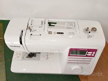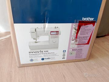Macchina da cucire elettronica Brother INNOV-IS A50. È leggera e trasportabile, il sistema automatico di infilatura dell'ago semplifica il suo utilizzo. La manopola di selezione elettronica dei punti “jog dial” 50 punti Infilatura dell’ago avanzata a singolo movimento 5 tipi di asole automatiche in un passaggio Tasto punto di fermatura Inserimento ago gemello Sgancio della griffa Bobina ad inserimento rapido: è sufficiente infilare una bobina completa e inserire il filo nella direzione della freccia per essere pronti a cucire Cursore di regolazione velocità. Infila ago e infilatura automatica. Bobina ad inserimento rapido. Sistema di avvolgimento bobina con taglio filo. Comandi semplici e intuitivi. Regolazione della velocità tramite cursore. Display LCD. Piedino a sgancio rapido. Braccio libero. Vano accessori. ACCESSORI IN DOTAZIONE: Piedino per asole A Piedino per sopraggitto G Piedino per monogrammi N Piedino per cerniere I Piedino per zig-zag J Piedino per punto invisibile R Piedino di cucitura bottone M Taglia asole; 4 spoline Set di aghi Ago gemello Spazzolino di pulizia Punzone per occhielli Cacciavite piccolo, grande e a disco Fermo per rocchetto piccolo, medio e grande Portarocchetto supplementare Retina Pedale elettrico (reostato) Manuale di istruzioni in italiano Borsa accessori Copertura morbida.