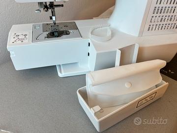 Infilatura dell’ ago semplificata grazie alle line guida , pulsante punto di frenatura/ rinforzo punto , pulsante avvio/stop, pulsante alzi/scendi ago .