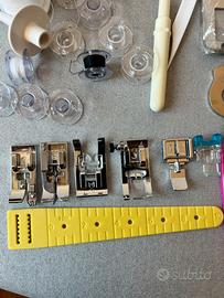 59 punti , 7 piedini ( G, R, N, J, M, I, 6/8, A/7) , aghi (1 da 75/100, 1 ago gemello, 2 da 90/14 organ, 5 da 8/12 Schrietz) .