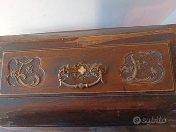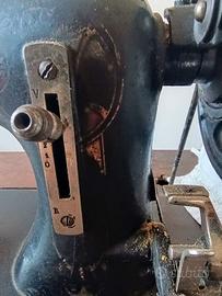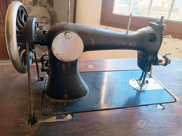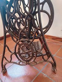 Inizi '900, a pedale, con struttura in ghisa e coperchio in legno. ferma da anni da revisionare se volete usarla ottimo stato la struttura misura ripiano in legno 85x40 altezza da terra 74 a Revine Lago (TV)
