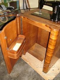 Bellissima macchina da cucire marca Klinwer risalente agli anni '40, con mobile in perfetto stato di conservazione. La macchina e' funzionante e si puo' ritrarre nel mobilettto fino a scomparire. Nel passato e' stata elettrificata e dispone di motore elettrico collegato al pedale interno al mobile. Lo sportello del mobile comprende due vani contenitori estraibili. Contatto telefonico. Spese di trasporto a carico acquirente.