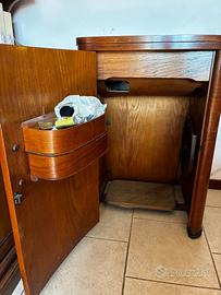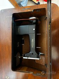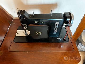 Macchina da cucire Necchi BF (periodo anni 50/60) con mobiletto in legno, piano ribaltabile laterale, pedale e vano/cestello porta accessori. La macchina è in buone condizioni, ferma da un po' di tempo ma sempre conservata in appartamento. Il funzionamento è a pedale con meccanismo a cinghia. Si tratta di mobile con dimensioni importanti per cui è disponibile il solo ritiro in zona Porto Viro (RO) con formula visto e piaciuto. Non esitate a contattarmi per eventuali domande.