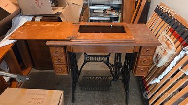 I mobiletri: uno è originale Singer, l'altro è moderno ed è quello in cui la macchina attualmente è montata.