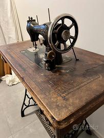 Vendo macchina da cucire antica completa di tavolino in legno originale.