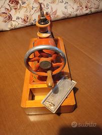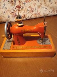 Macchina da cucire per bambine vintage, prodotta in ULSS anni '80. Questo giocattolo meccanico è stato progettato per ispirare la creatività dei più piccoli ed è oggi un raro oggetto da collezione. Realizzata in legno e metallo di alta qualità.