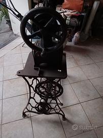 macchina d'epoca, in ghisa fusa e decorata montata sull' apposito supporto(sempre in ghisa)