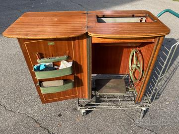 Per collezionisti: macchina per cucire con mobile in radica PFAFF 260 (circa cm. 55x45x82) funzionante e tutta originale. Scatola con attrezzi e parti meccaniche. Libretto istruzioni originale. Ho altre foto che mando su richiesta. Dati peso e dimensioni, preferirei non dover spedire. Se proprio interessati, valutiamo insieme.