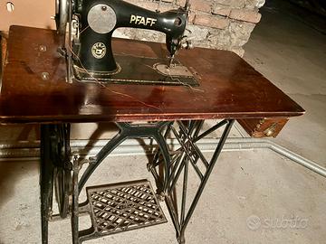 Vendo bella macchina da cucire d’epoca PFAFF degli anni 30, con mobile originale in legno e struttura in ghisa, in ottimo stato, ancora funzionante, perfetta per arredo vintage e collezione : - macchina originale con dettagli dorati funzionante - mobile in legno con copertura (da sistemare) - pedaliera in ghisa decorata e funzionante - ottimo stato conservazione Disponibile per ulteriori info e per visione