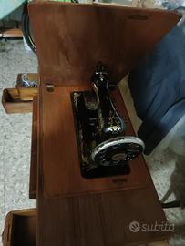 Completamente originale e funzionante. Base in ghisa con pedalina. 4 cassetti con decori in rilievo, 2 a sinistra e 2 a destra. Piu al centro cassetto a scomparsa. Accessiorata di piedini.