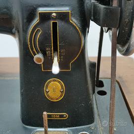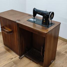 Usato in buone condizioni come da foto. La macchina presenta la normale patina del tempo ma le decalcomanie sono ancora ben visibili. Il mobile è solido, con lievi segni d'uso superficiali dovuti all'età. Il meccanismo a pedale appare fluido.