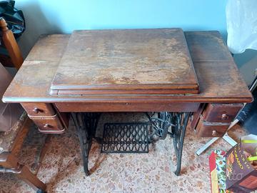 macchina da cucire in buone condizioni con mobile e base in ghisa del 1918