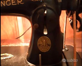 Macchina da cucire Singer 1934 completa di mobiletto e luce ad incandescenza originale.