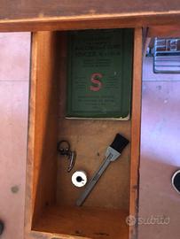 Macchina da cucire Singer perfettamente funzionante come da foto. Mobile incorporato con sistema di chiusura a scomparsa. Per collezionisti, completa di ricevuta d'acquisto ed accessori. Non spedisco. L'oggetto è disponibile per visione zona San Felice sul Panaro Prov. MO - prezzo trattabile