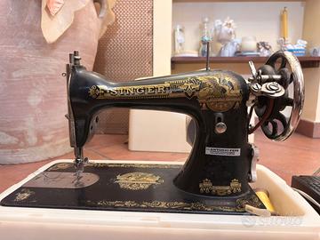 macchina da cucire della Singer, anni 40 circa. La macchina è del tipo manuale e successivamente è stato aggiunto un motorino, come si vede nelle foto.