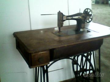 macchina molto vecchia completa di mobiletto in legno e telaio in ghisa marcato "Kohler". La macchina è asportabile e ripiegabile verso l'interno. Inoltre c'è un coperchio in legno per richiudere il foro-macchina. La cinghia di trasmissione è mancante. Non si fanno spedizioni, è visionabile in ogni momento. Chi è interessato può farmi un'offerta.