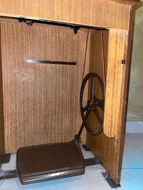 La macchina è il classico modello robusto in ghisa nera, ideale per chi cerca un oggetto d'arredamento vintage o una meccanica indistruttibile per cucire tessuti pesanti (come jeans o pelle) una volta revisionata.