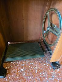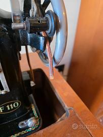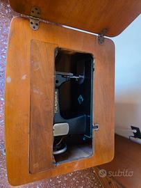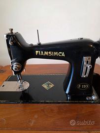 Macchina da cucire vintage Fiamsimca F110 con mobile a scomparsa. Condizioni come da foto. Perfettamente funzionante, necessita solo della sostituzione della cinghia in cuoio (come da foto, la cinghia si è tranciata per l'età). Si accetta solo ritiro in loco, no spedizione. Prezzo trattabile.
