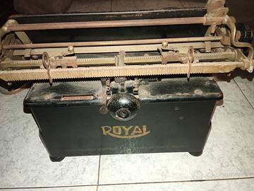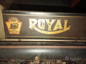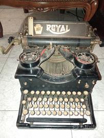 Macchina da scrivere Royal n.10 databile tra gli anni 10 e gli anni 20, design a base piana in colore nero e con due vetri laterali. Un oggetto robusto usato da grandi romanzieri come Ernest Hemingway e Ian Fleming. Ideale per allestimenti, video e shooting vintage.