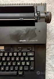 Macchina da scrivere elettronica di colore nero, con dettagli di colore grigio e bianco, di marca Olivetti, modello ET Compact 60, originale e funzionante.