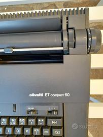 Vendo macchina da scrivere elettrica Olivetti "ET Compact 60" in perfetto stato. Usata pochissimo e ancora funzionante. Completa del suo coperchio di protezione in plastica trasparente. Per amatori e collezionisti.