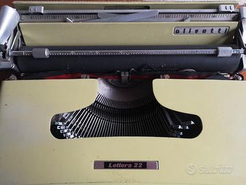 Macchina da scrivere portatile Olivetti Lettera 22 con custodia originale, color verde chiaro.