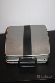 La custodia originale rigida è presente e completa, ma mostra segni evidenti del tempo: l'interno è macchiato e la zip, pur scucita in parte, è ancora integra e funzionante.