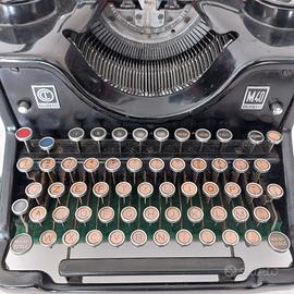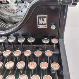 Vendo come da titolo Olivetti M40 Nera, nello stato del ritrovamento, solo spolverata, macchina da scrivere molto pesante probabilmente degli anni 30/40, ritrovata in soffitta con il suo tappetino di appoggio verde originale e ed eventualmente la custodia che però, essendo in plastica, negli anni si è tagliata in più punti.