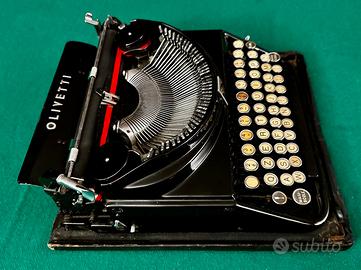 La prima macchina da scrivere portatile prodotta dalla Olivetti negli anni Trenta. Un pezzo che non può mancare in ogni collezione importante. Questo esemplare è in eccellenti condizioni, sia estetiche che meccaniche. E' completo della custodia e della sua base in legno (mancante della parte con la chiusura, vedi foto).