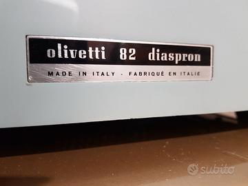 Vintage Macchina da scrivere manuale portatile Olivetti 82 Diasprom. Anni 70, molto ben conservata. La Diaspron 82 è una celebre macchina per scrivere meccanica standard realizzata dalla Olivetti. Fu progettata nel 1959 dall'architetto e designer Marcello Nizzoli, collaboratore dell'azienda di Ivrea dal 1938, in collaborazione con l'ingegnere Giuseppe Beccio.