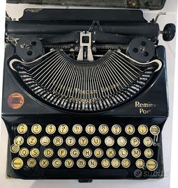 Splendida e autentica macchina da scrivere portatile REMINGTON PORTABLE, un'icona del design industriale e della tecnologia da ufficio della prima metà del Novecento.