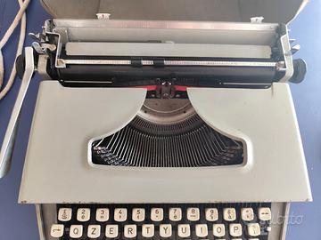 remington travel riter deluxe macchina da scrivere colore grigio/azzurrino con custodia. la cerniera della custodia è rotta.