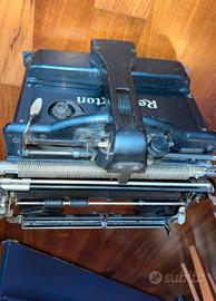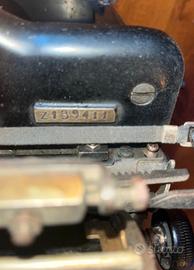 Marca: Remington Typewriter Company Modello: Remington Standard No. 31 - Matricola: Z139411 Periodo di produzione: circa 1929–1933 Distribuzione italiana: Cesare Verona, Torino (agente generale per l’Italia, come riportato sulla decalcomania frontale) Origine: USA / Italia (importata e marchiata per il mercato italiano) Dimensioni: Larghezza: 31 cm - Profondità: 37 cm - Altezza: 27 cm Peso: circa 16 kg Colore: Nero laccato con scritte dorate e sigillo rosso “Remington Standard Typewriter” Struttura in ghisa, tastiera QZERTY, tasti circolari in vetro con cornice metallica, meccanismo frontstrike (battuta visibile). Carrello largo con scala graduata e leve di regolazione margine. Condizioni: Condizioni buone per l’età (oltre 90 anni): scritte e decorazioni leggibili, struttura integra. Meccanismo completo, non testato per la piena funzionalità. Adatta come pezzo da collezione o oggetto d’arredo vintage/industriale. C00006566-4326