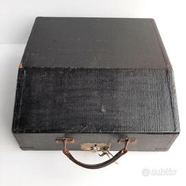 Completa della custodia rigida originale in legno rivestita in similpelle nera, con maniglia in cuoio e chiusura metallica.