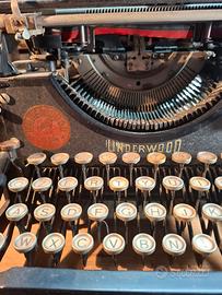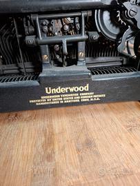 Macchina da scrivere vintage / epoca / design Underwood numero 5, prodotta negli Stati Uniti a partire dal 1900, struttura in ghisa verniciata di nero, tastiera italiana qzerty. Prezzo trattabile.