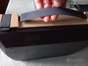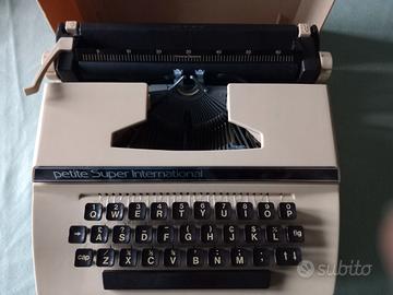Macchina da scrivere vintage anni ’70 marca Petite Super International, in plastica made in England con custodia protettiva. Per il trasporto c’è la maniglia, anche se la plastica di una delle due chiusure si è rotta. Funzionante, per collezionisti.