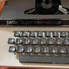 macchina da scrivere, davvero molto vintage! Della Byron Jardine. Made in England. Modello Petite Super International. Non scrive, ma credo sia dovuto al fatto che gli manca inchiostro (per chi se ne intende, puo’ acquistare il nastro di inchiostro e metterlo). Per il resto, è ancora tenuta molto bene. Non ha più la sua scatola originale e le relative istruzioni. Ma ha ancora il suo coperchio in buone discrete condizioni (dovuto al fatto che la plastica si è sporcata nel tempo, ma non presenta nessun pezzo rotto). E’ degli anni 80 circa. Solo per veri collezionisti o intenditori!