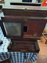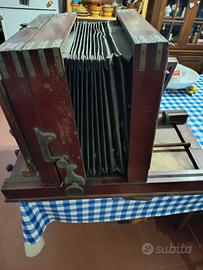 macchina fotografica antica in ottime condizioni , niente tarli ha solo la membrana un po' rovinata se viene aperta, ci sono anche piastre x le foto