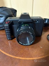 Realizzata in plastica con design ispirato alle fotocamere analogiche classiche.