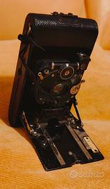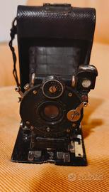 macchina fotografica Goerz Roll Berlin a soffietto, anno di produzione 1924 circa, lente Dogmar 1:4,5/75 mm, apertura 4,5-25, otturatore pneumatico, rullino 127 4x6, 5 cm, fotocamera pieghevole, per veri intenditori e antiquari, pezzo raro e di valore, funzionante, l'otturatore scatta ad ogni carica di pellicola a nastro. È preferibile ritiro di persona per il valore dell'oggetto