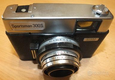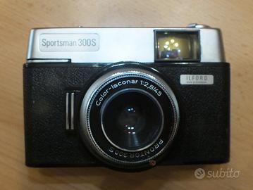VENDO macchina fotografica vintage, marca “ILFORD” modello “SPORTSMAN 300S”, made in Germany, obiettivo Prontor 300S Color-Isconar 1:2,8/45, anno 1967 per collezionismo. Completa di custodia originale in pelle e corredata da foglio originale di istruzioni sull’uso.