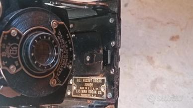Macchina fotografica vintage No. 1 Pocket Kodak Junior, prodotta dalla Eastman Kodak approssimativamente tra il 1914 e il 1927.Considerata l'età della macchina fotografica è in buone condizioni come si vede dalle foto, con scatola originale.