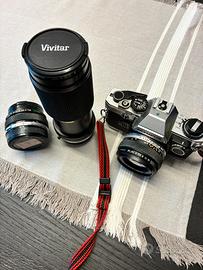 Macchina fotografica olympus con obbiettivo da 50 più obbiettivo da 28 e teleobiettivo 80/200.