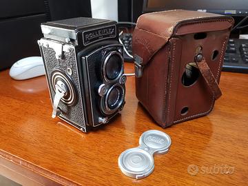 Mitica Rolleiflex anni '40 completa di custodia originale in pelle come da foto.
