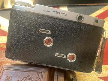 La Mockba 5 è una fotocamera pieghevole a soffietto per pellicole in rullo formato 120, capace di realizzare negativi in formato 6×9 cm. Grazie a un apposito adattatore può essere utilizzata anche per il formato 6×6 cm, riducendo l’area del fotogramma tramite una mascherina interna. Solida, funzionale e precisa, rappresenta uno degli esempi più significativi di produzione fotografica sovietica del dopoguerra, capace di coniugare avanzate soluzioni tecniche e robustezza costruttiva.